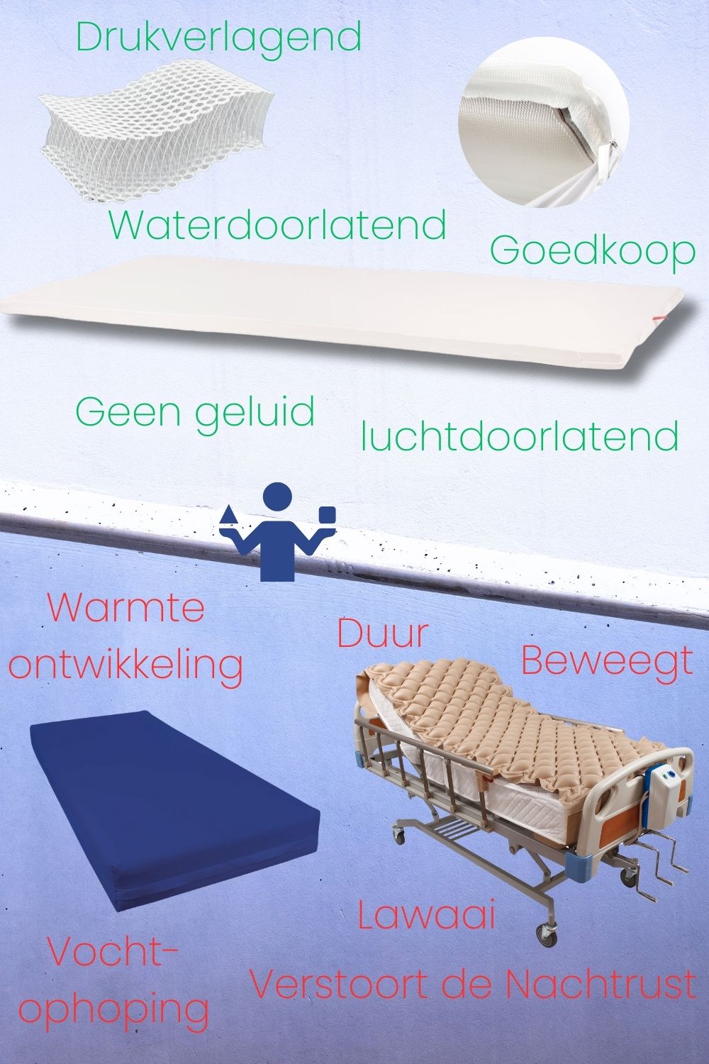 Anti-decubitus matrastopper met innovatieve technologie die naast drukverlaging ook zorgt voor meer luchtcirculatie om daarmee vochtophoping te voorkomen, waardoor de huid droog blijft en de genezing bevordert.