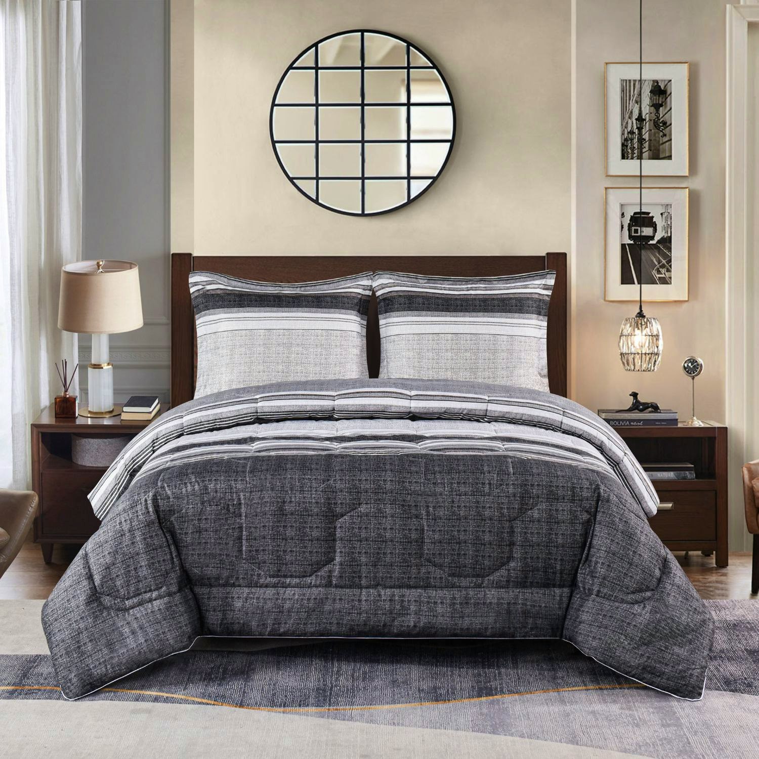 Couette sans housse (avec taies d'oreiller) | Motif Velvet | Gris/noir | Couette tout au long de l'année 400g/m²