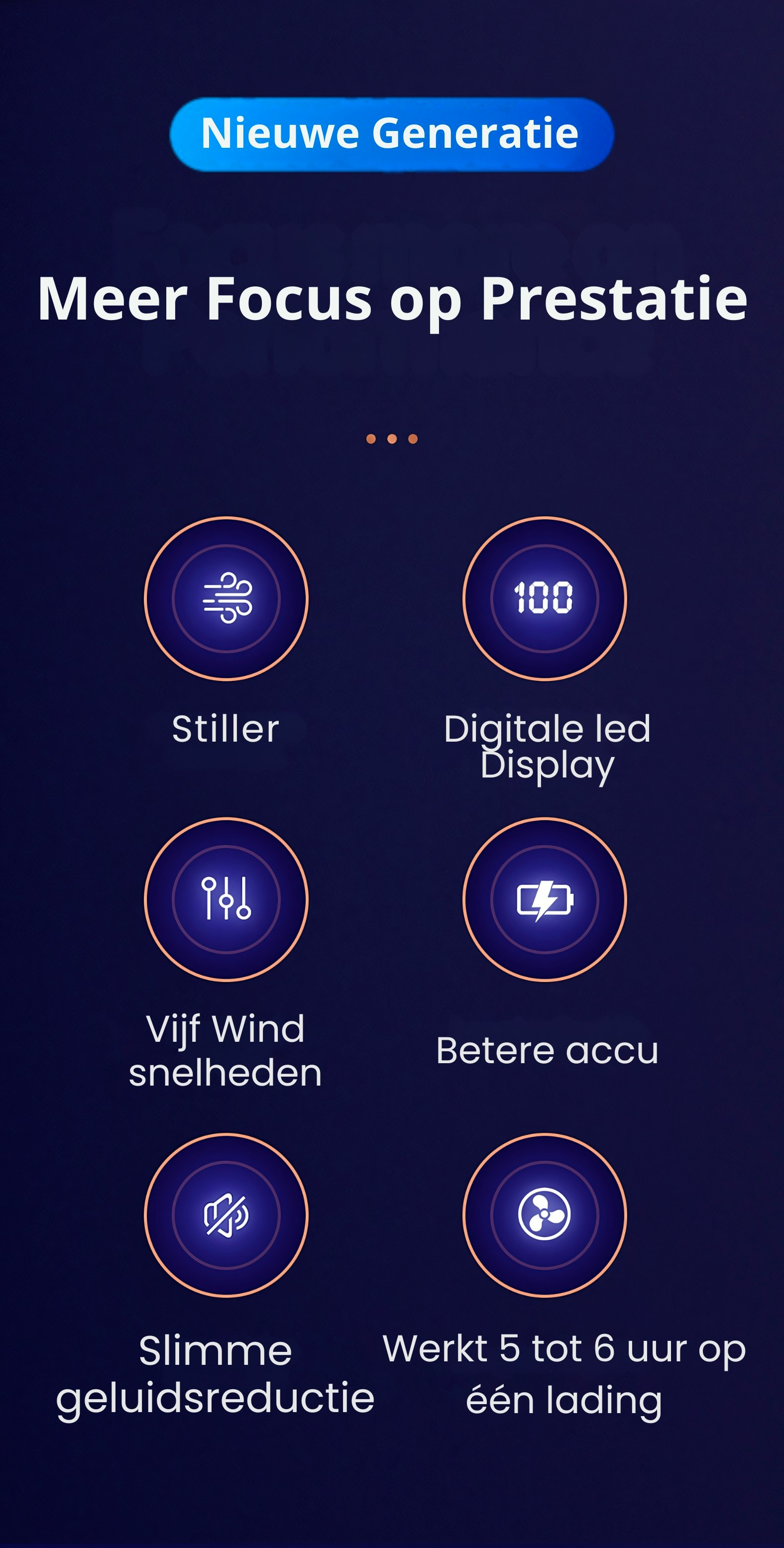 - Stilte: Fluisterstil met geluidsniveaus onder de 20 dB, ideaal voor gebruik in elke omgeving.