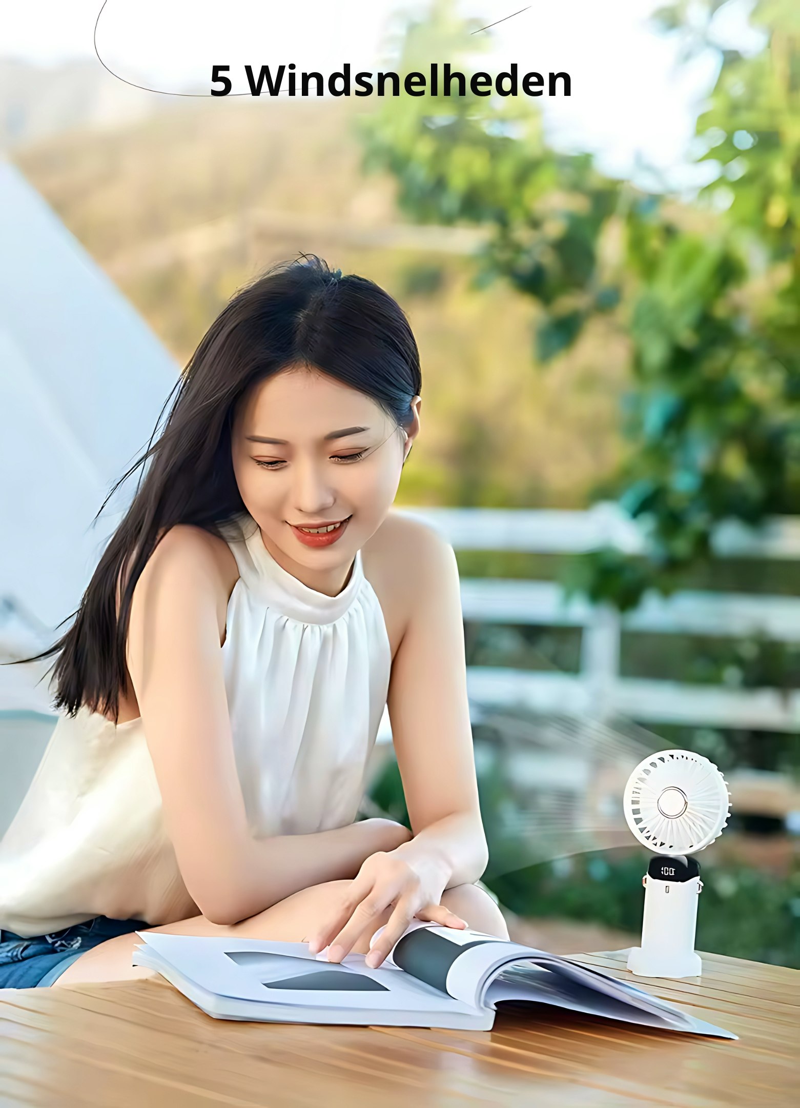 - Staand als tafelventilator Modus: Zet de ventilator neer op een vlakke ondergrond voor handsfree verkoeling.